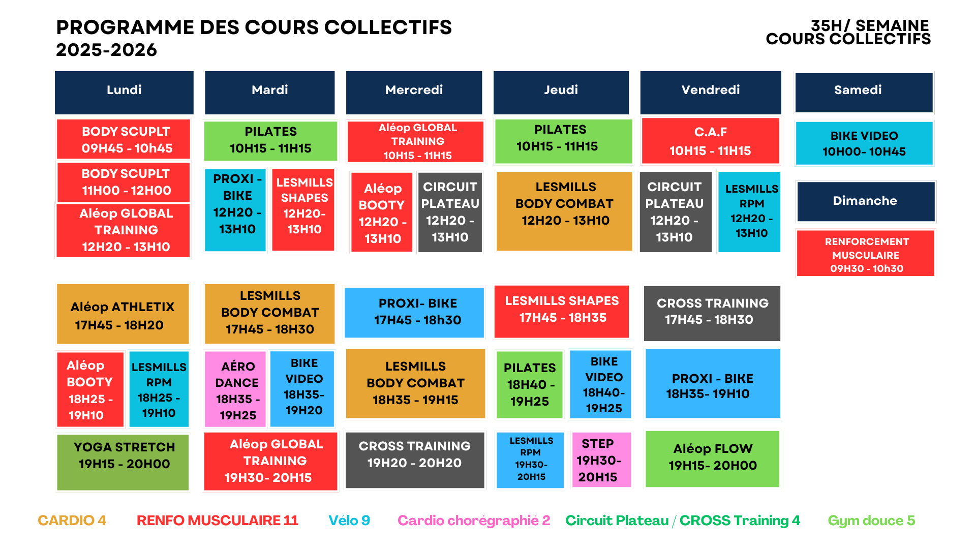🎬 Découvrir les cours en vidéo : Global Traning (Force) / Flow / Athletix / Booty / Upper